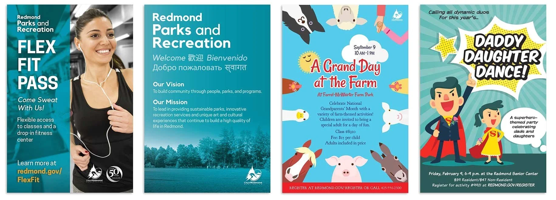 The City of Redmond, a municipality located 15 minutes east of Seattle, is home to many well-known companies, including Microsoft and Nintendo of America. As a graphic designer on Redmond’s communications team, I worked with multiple City organizations to create internal and external outreach materials.